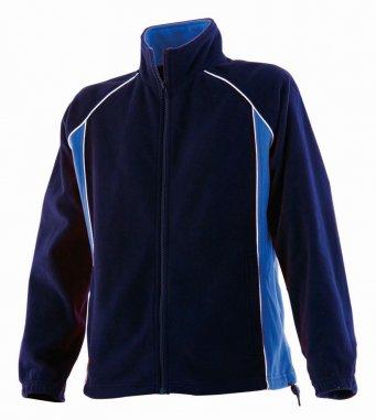 Material:100% polyester micro fleece.Pill resistant.Contrast inner collar.Contrast panels with white piping down body sides.Piping along raglan seams.Full zip.Front zip pockets.Part elasticated cuffs.Drawcord hem with toggles.